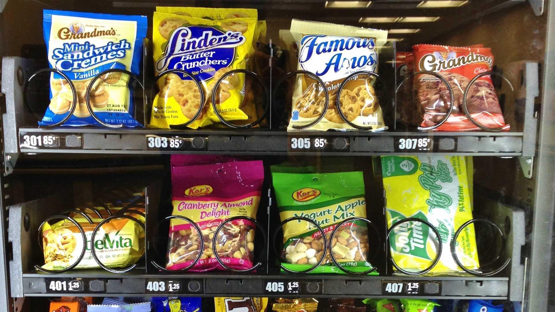 Distributeurs de boissons, confiseries, biscuits, snacks, etc.